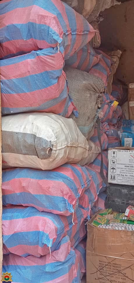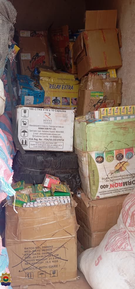 Suite à l’exploitation efficace de renseignements, les gendarmes ont conduit une opération d’envergure au marché de Diara, situé dans la région du Nakambé. Le 9 février 2026, une mission de reconnaissance a permis d’identifier quatre entrepôts suspectés d’abriter des marchandises prohibées. Sur instruction du Procureur du Faso près le Tribunal de Grande Instance de Tenkodogo, une opération de bouclage suivie de perquisitions a été exécutée le 12 février 2026.